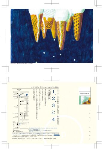 なんだか個展だかヌーだか混乱して、 何をやっているんだろうと不安になって 目がかっと開いてしまう深夜3時などもあるわけですが、 自分の個展は当たり前ですがいつ行っても 毎度おなじみ自分の絵が出迎えるので、 「またおまえか」状態なわけですが、 行…